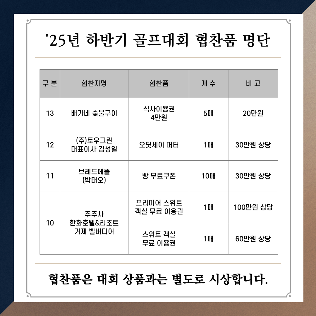 - 2025.10.07'25년 하반기 골프대회 협찬품 명단