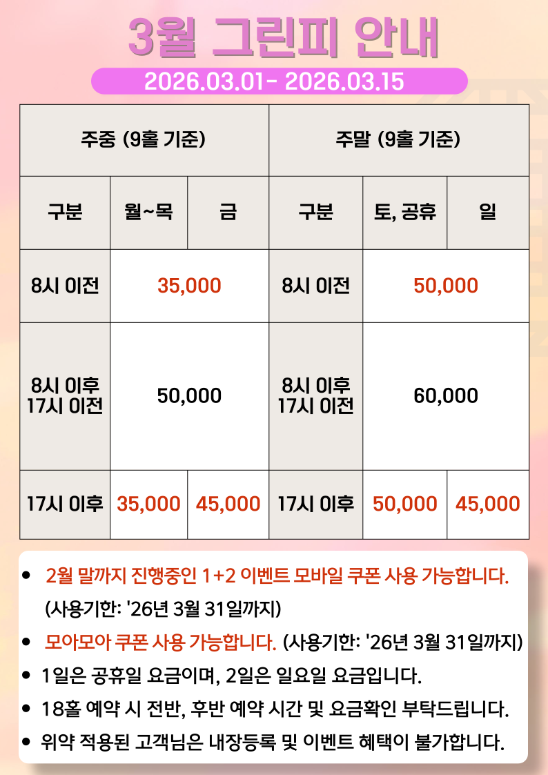※3월 그린피 안내※(3월 1일 ~ 3월 15일까지)