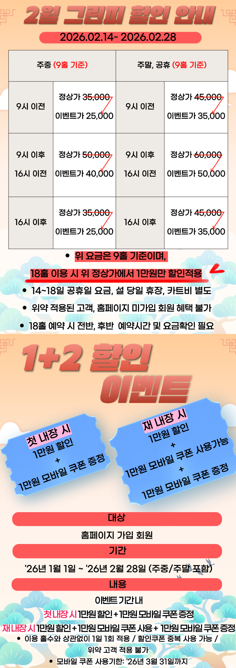 ★ 2월 프로모션 + 2월 그린피 할인 안내(2월 1일 ~ 13일까지) ★